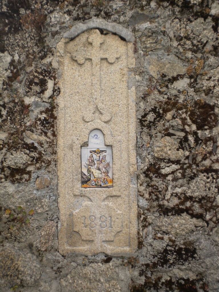 Localização: Ao fundo da calçada de São Pedro, inserida na esquina de um muro de terra de cultivo, encontra-se um monumento de granito, rectangular, disposto na vertical, com data de 1881. Na parte superior tem uma inscrição escavada de forma idêntica, mas encimada por um arco.